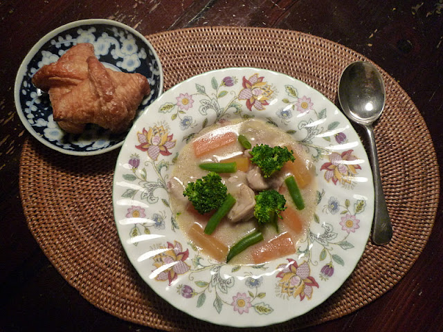 東京のアパートからの夕暮れ風景。中央は大山、2つの建物の間から富士山。
